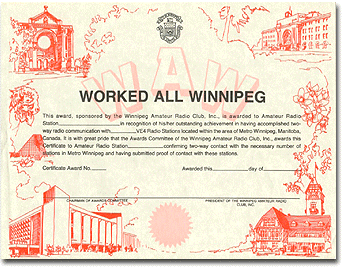 The “Worked All Winnipeg Award” is sponsored by the Radio Amateurs of Manitoba. It is awarded to an Amateur Radio Operator to recognize his/her outstanding achievement in having accomplished two way communications with the required number of VE4/VA4 radio stations located within the City of Winnipeg.
